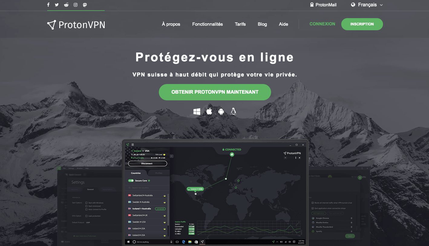 Ce qui rend ProtonVPN unique, c'est sa fonction de sécurisation Secure Core qui maintient votre connexion sécurisée en acheminant automatiquement votre trafic à travers plusieurs serveurs avant sa destination réelle. De plus, toutes leurs applications sont open source, donc tout le monde peut vérifier et s'assurer qu'elles ne comportent rien de suspect.